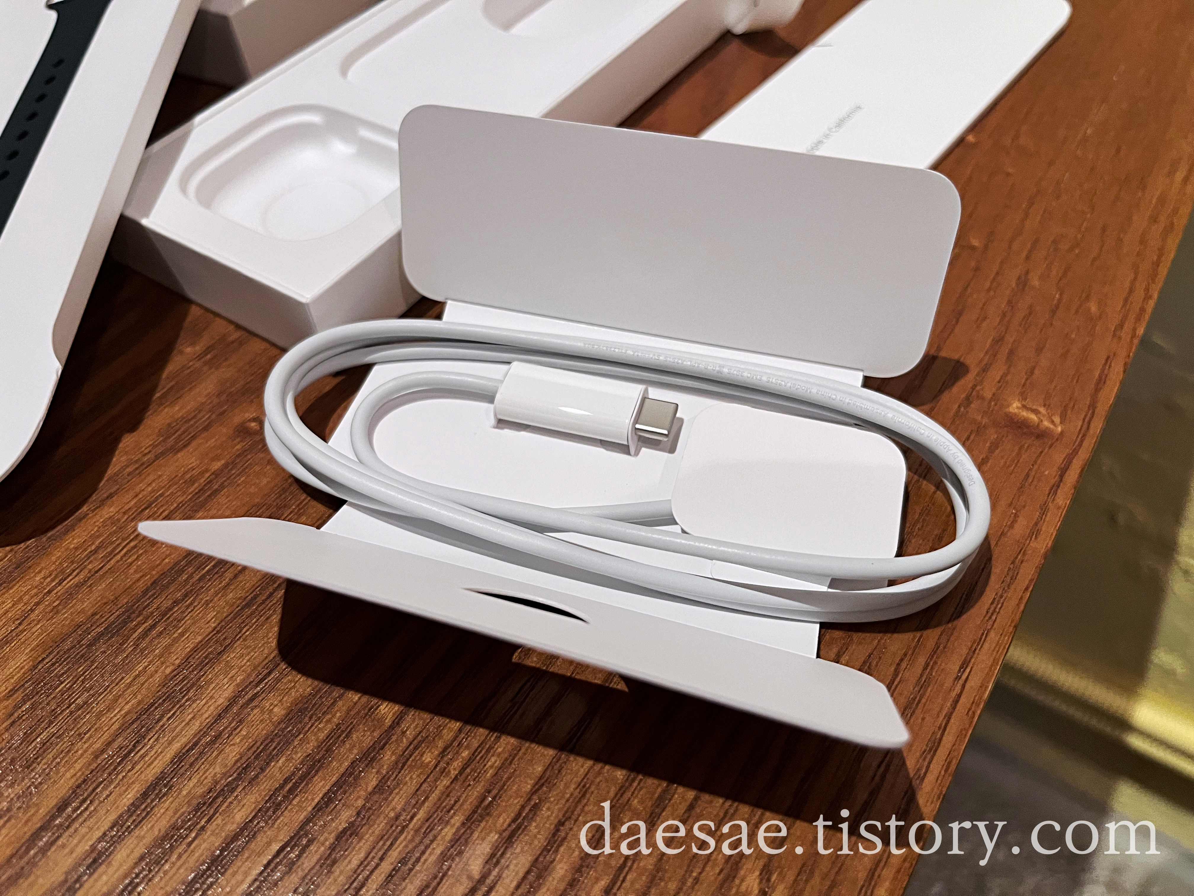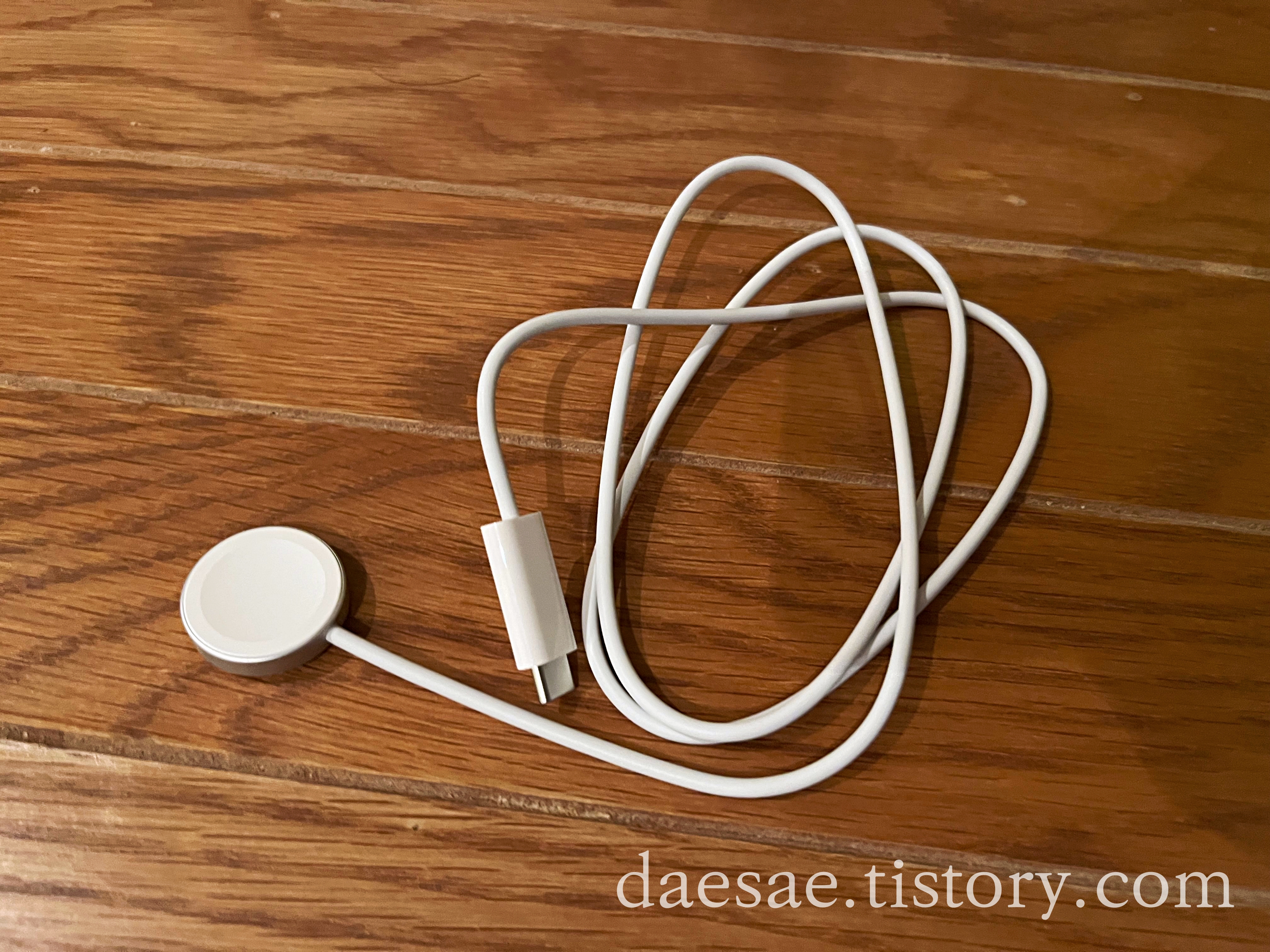 함께 동봉된 애플워치 8 마그네틱 급속 충전기(USB-C) 케이블입니다.