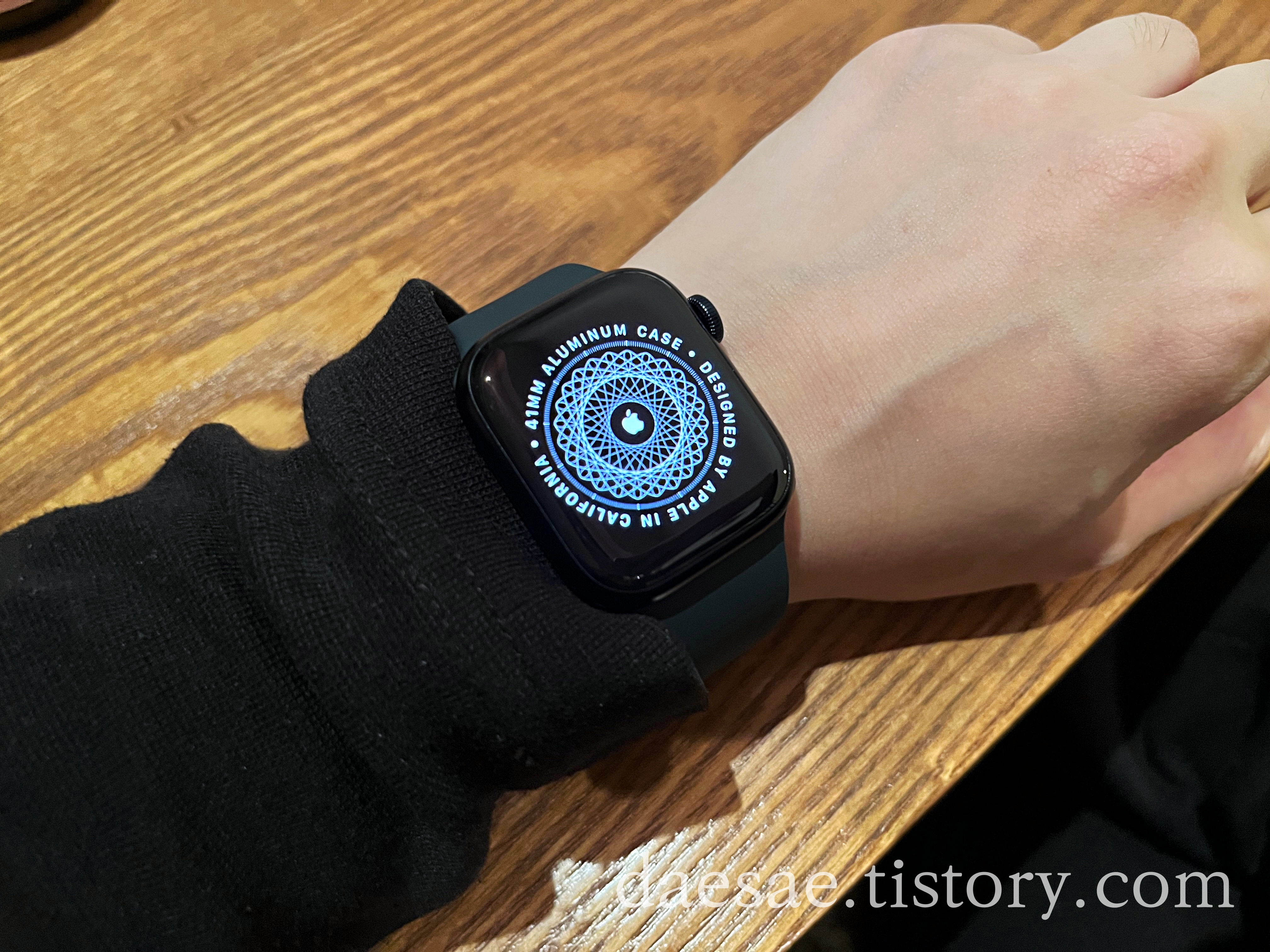 애플워치 사이즈를 41mm로 할지 45mm로 할지 고민을 하다가 남자여도 두꺼운 손목이 아니라면 41mm로 하는게 괜찮겠다 싶어 애플워치8 41mm로 주문했습니다.