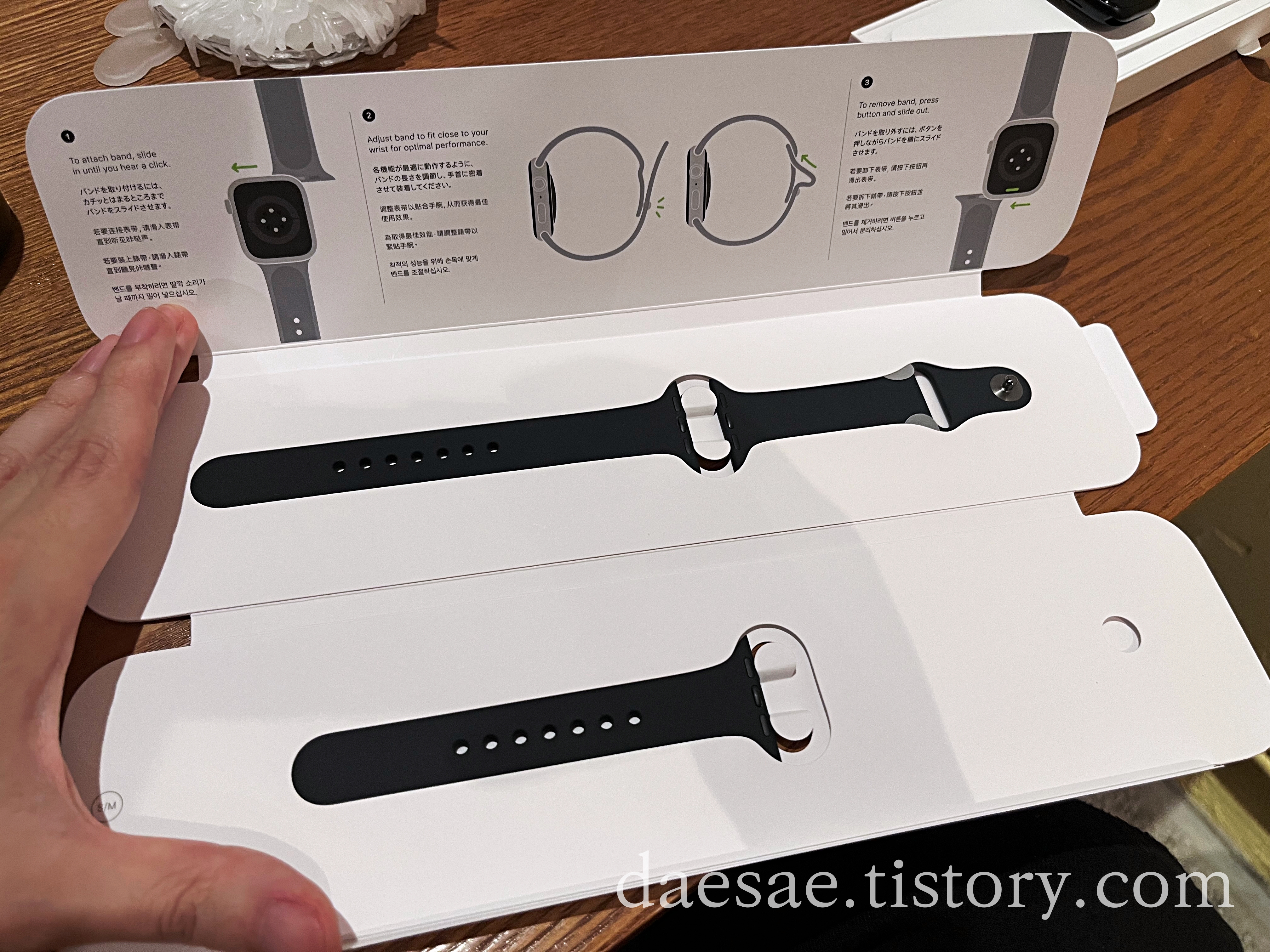 애플워치 본품과 스포츠 스트랩이 동봉되어 있습니다.