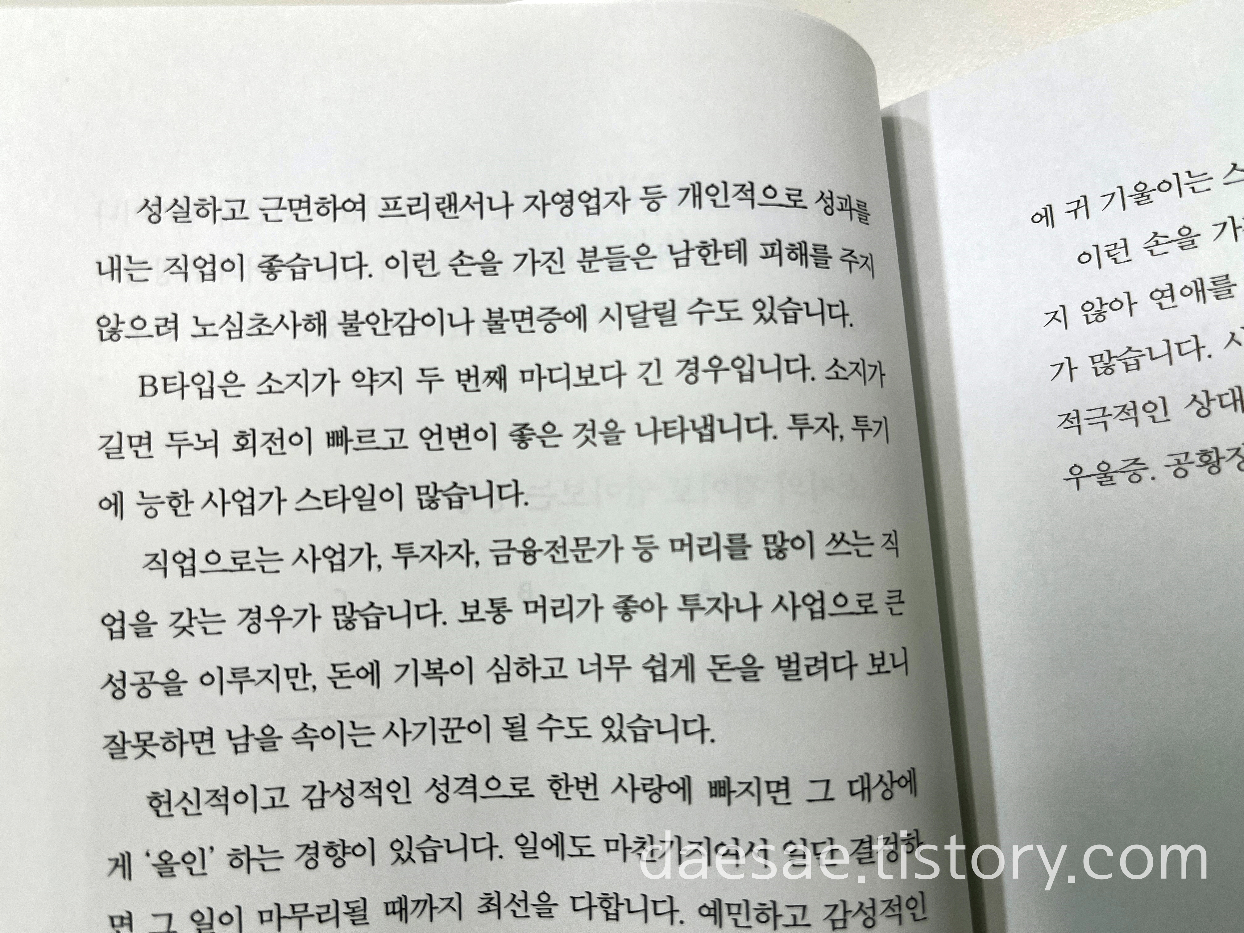 뒤쪽에는 더 자세한 손금 이야기가 있지만, 너무 책내용을 많이 공유하면 안될 것 같아 이만 줄이겠습니다.