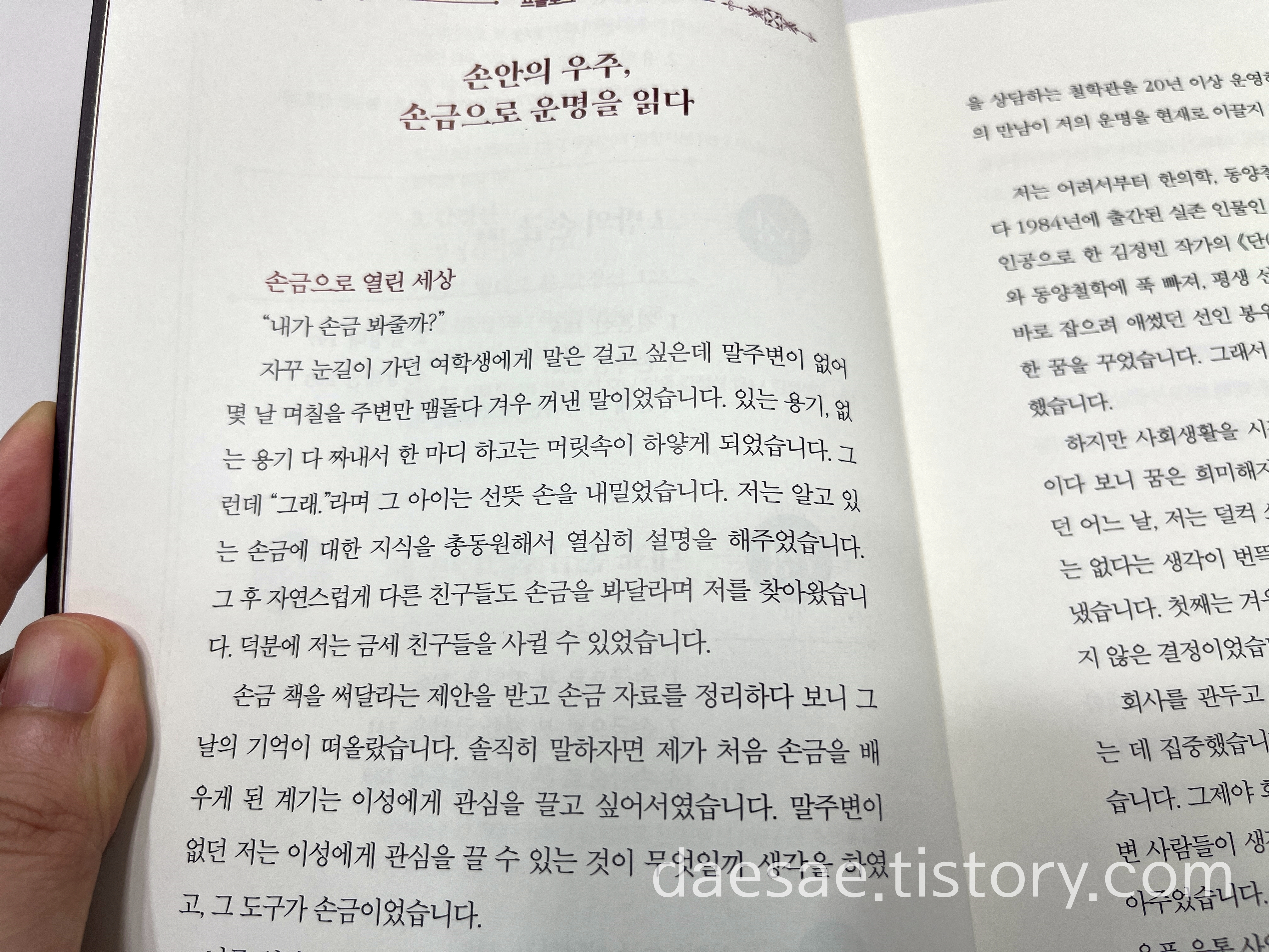 지은이의 손금을 배우게 된 이유가 참 재미있습니다.