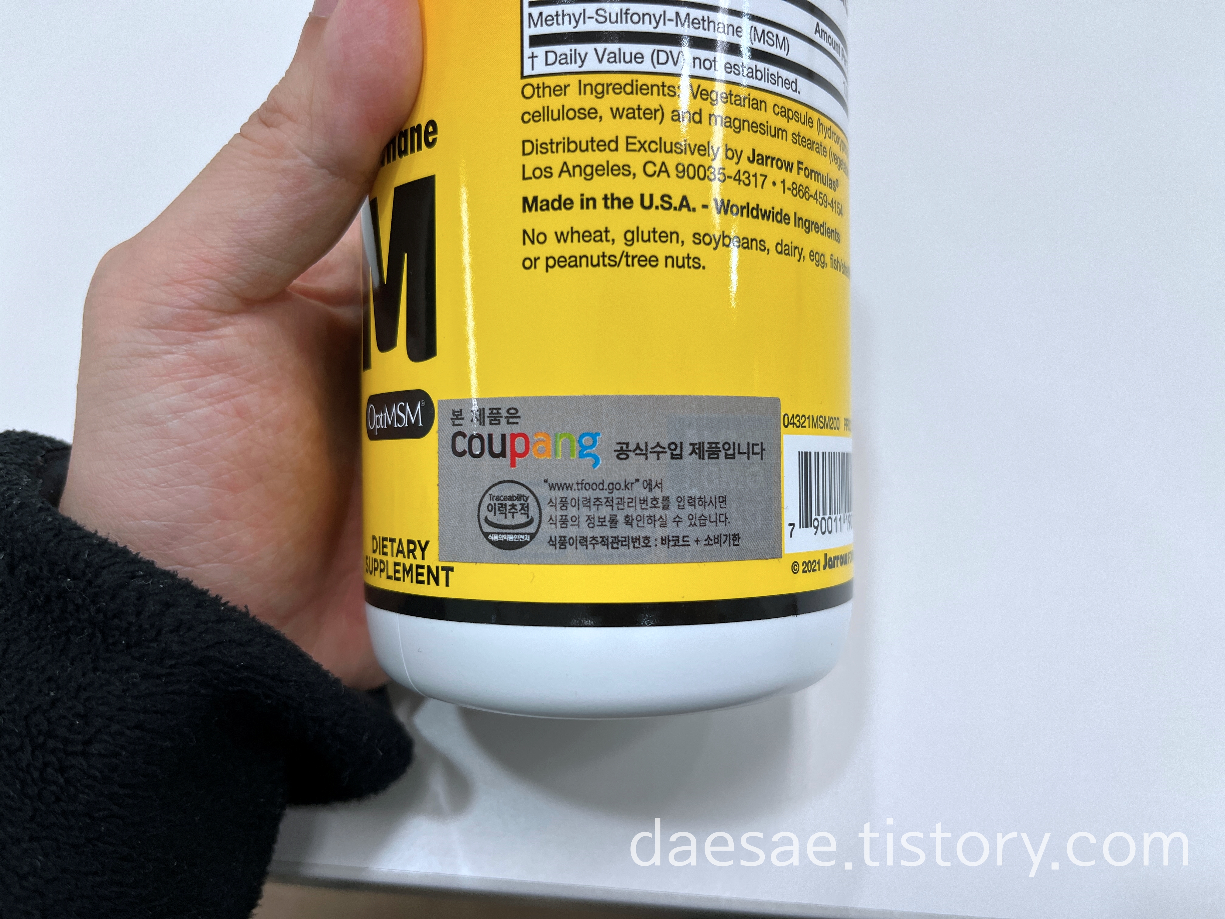 저는 재로우 MSM을 쿠팡에서 주문했는데, 쿠팡에서 공식으로 수입한 제품으로 직구할 필요없이 로켓배송으로 빠르게 배송받을 수 있어 좋았습니다.