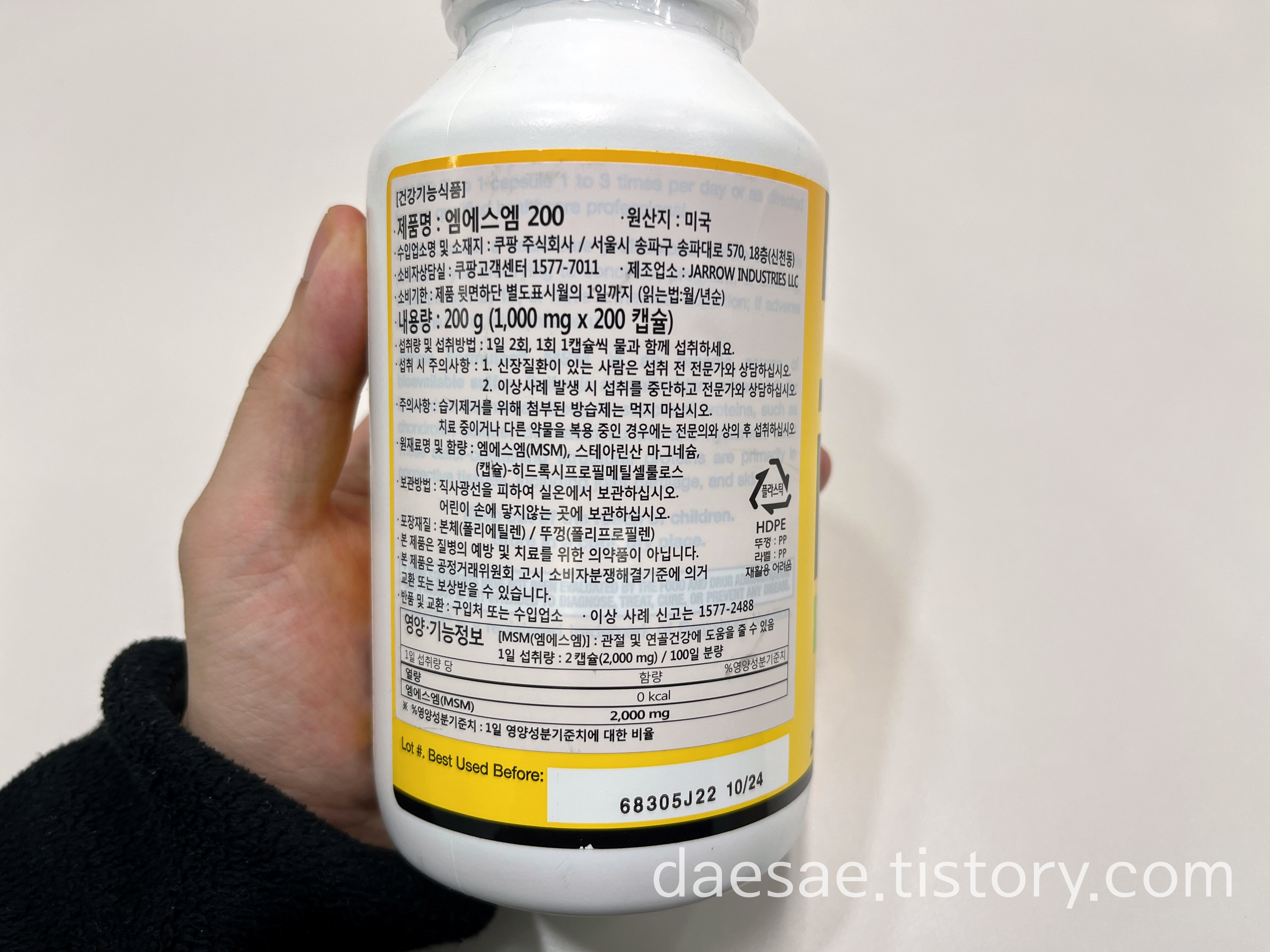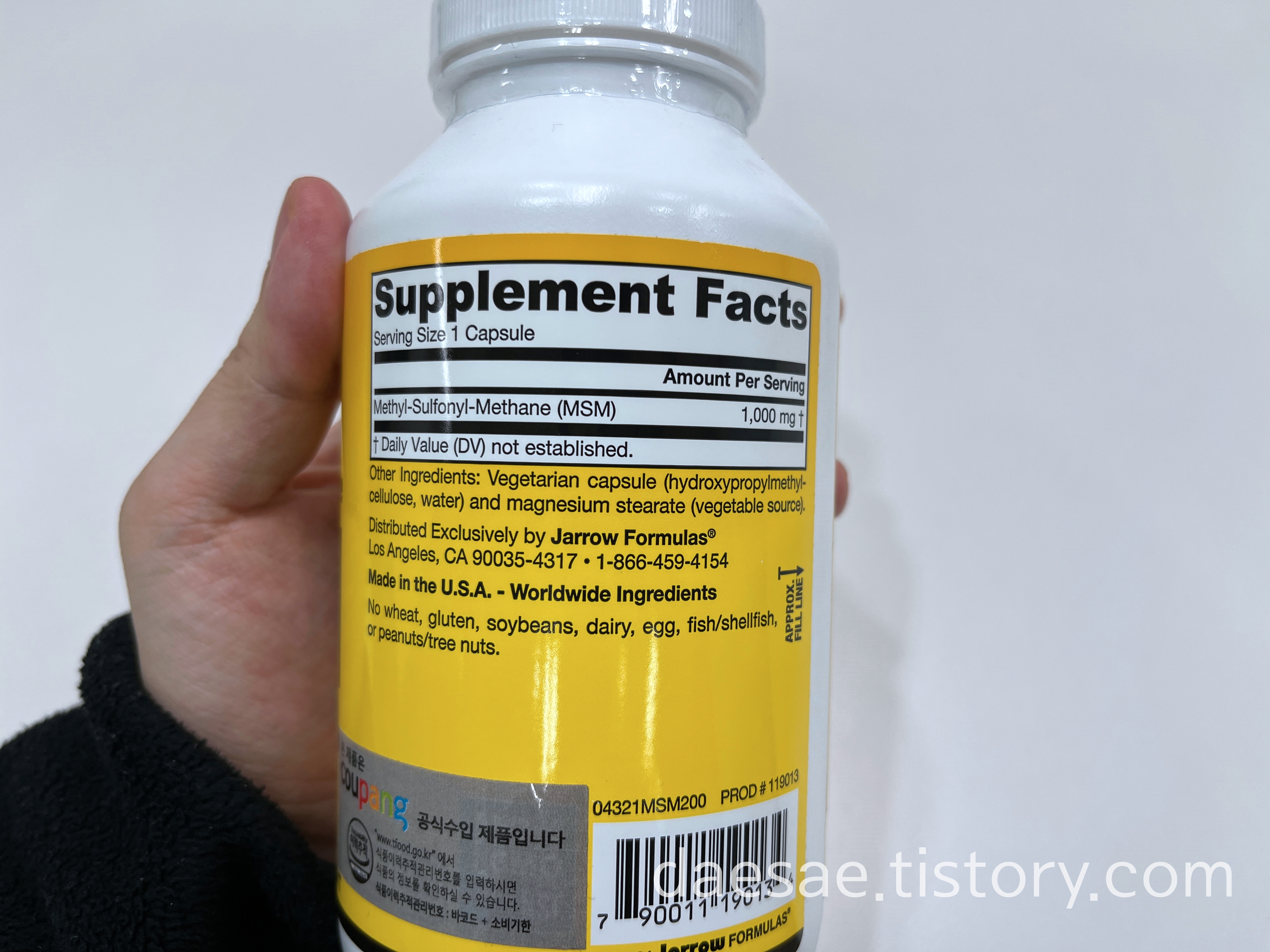 MSM 부작용도 주의해야할 점입니다. 소화불량, 설사, 발진 등의 부작용이 있을 수도 있다고하니 잘 판단해가며 먹어야겠습니다.