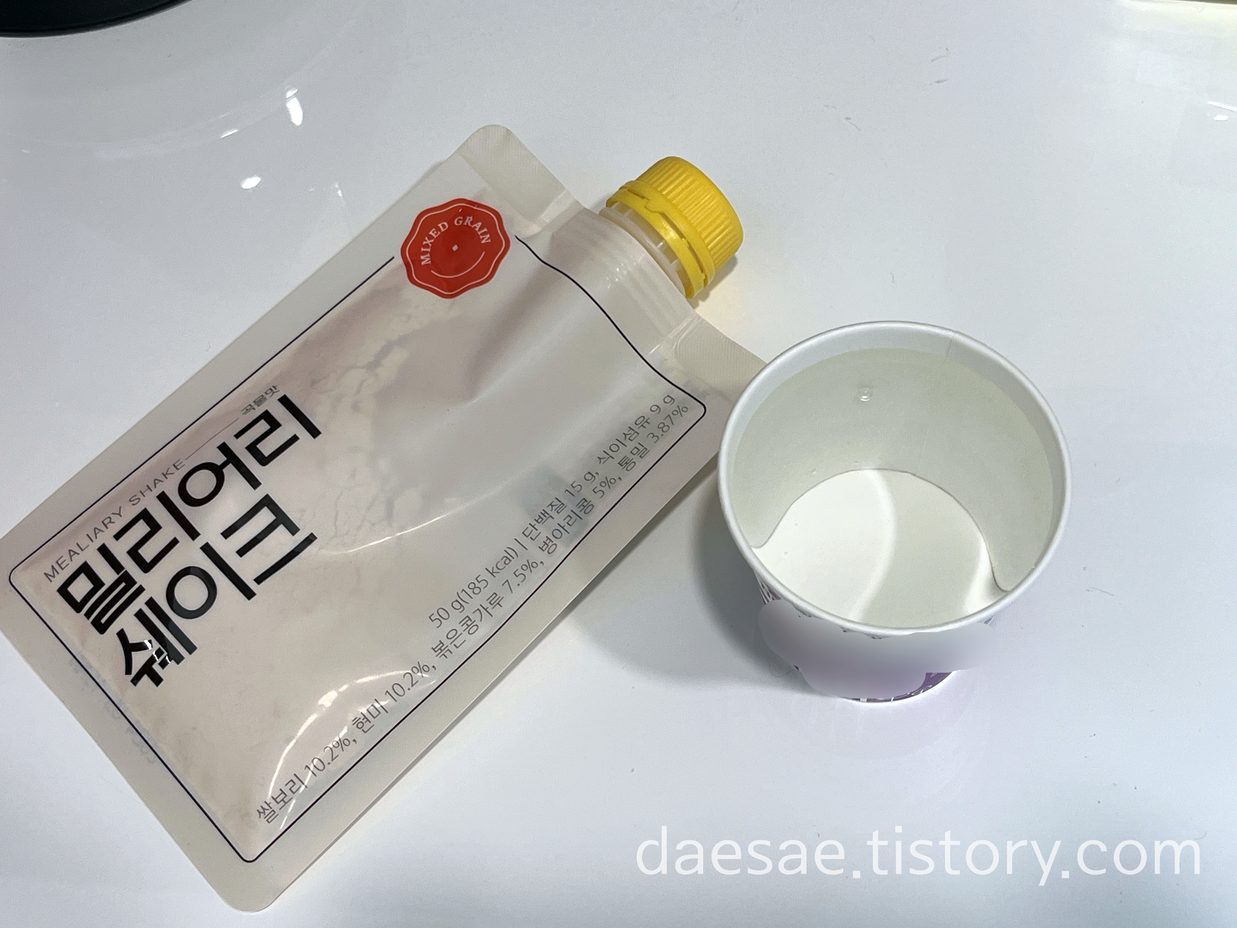 그래서 밀리어리 쉐이크를 사무실에서 먹을 때는 종이컵을 이용해 계량하는 것이 편할 것 같습니다.