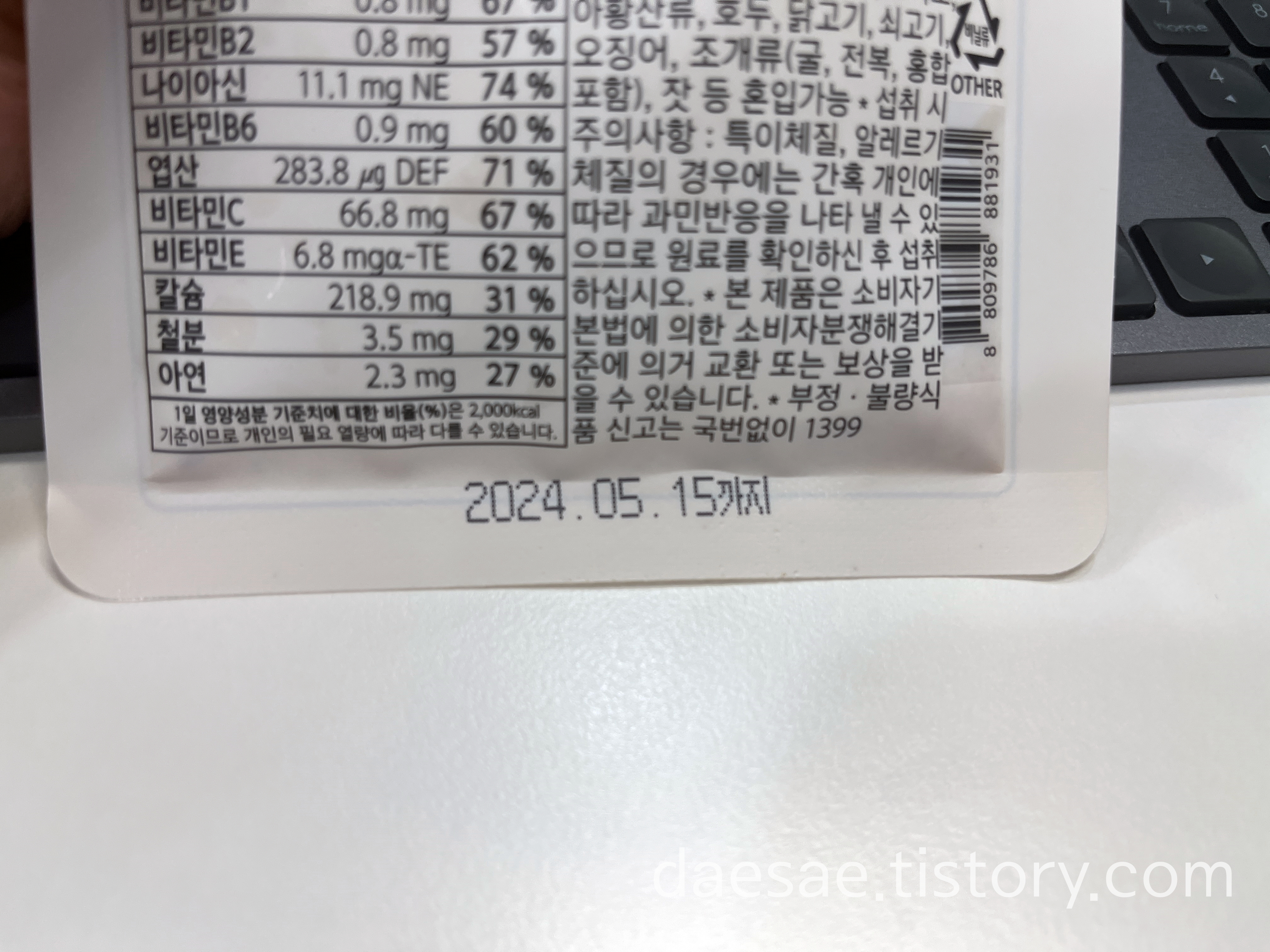 다만 지용성 비타민 A가 1일 영양성분기준치의 305%로 평소에 비타민A영양제를 챙겨먹는 사람들에게는 다소 주의가 필요할 것 같습니다.