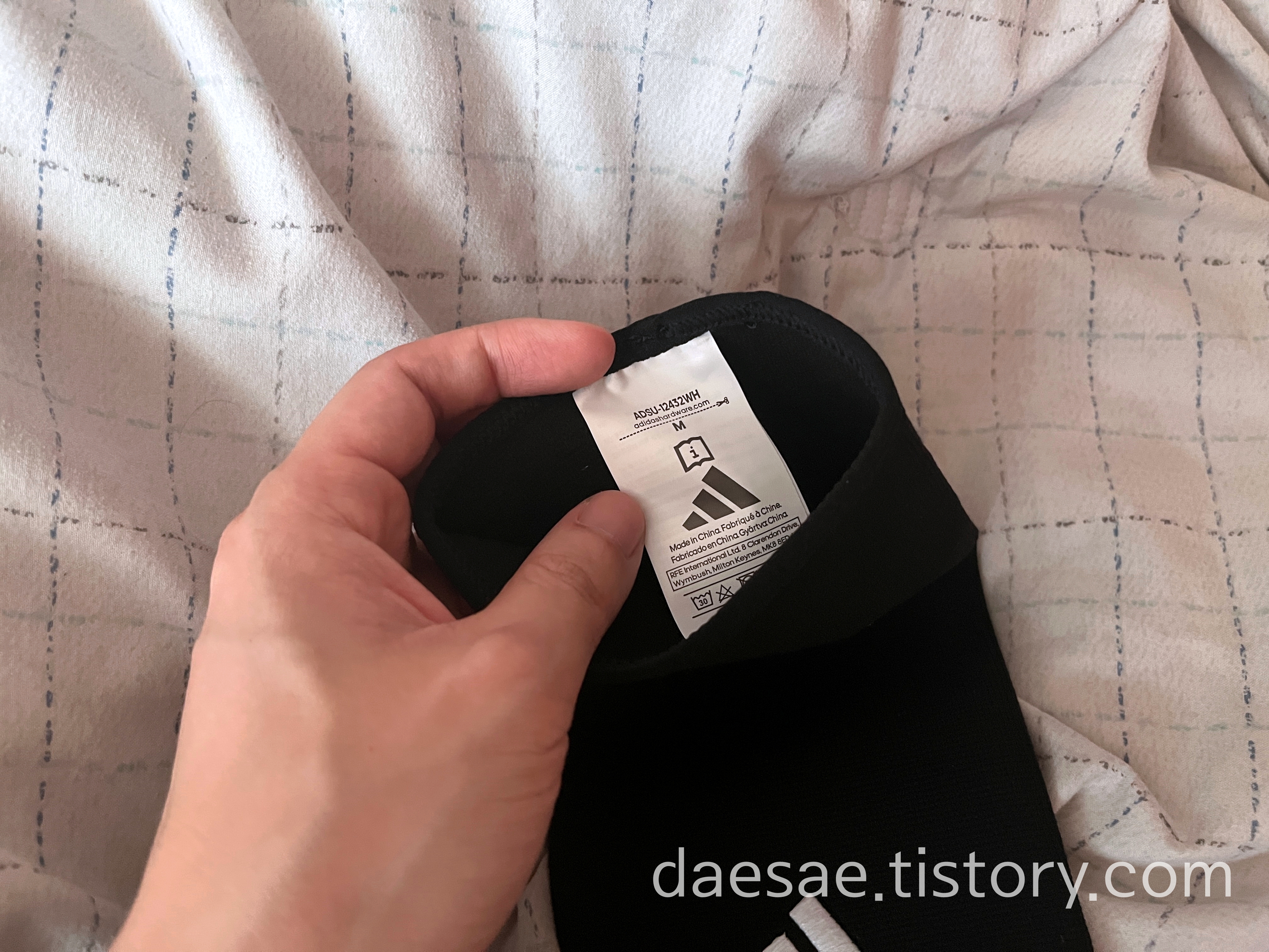 아디다스 팔꿈치보호대 안쪽에는 세탁관련 정보와 제품넘버(ADSU-12432WH)가 기재되어있습니다.