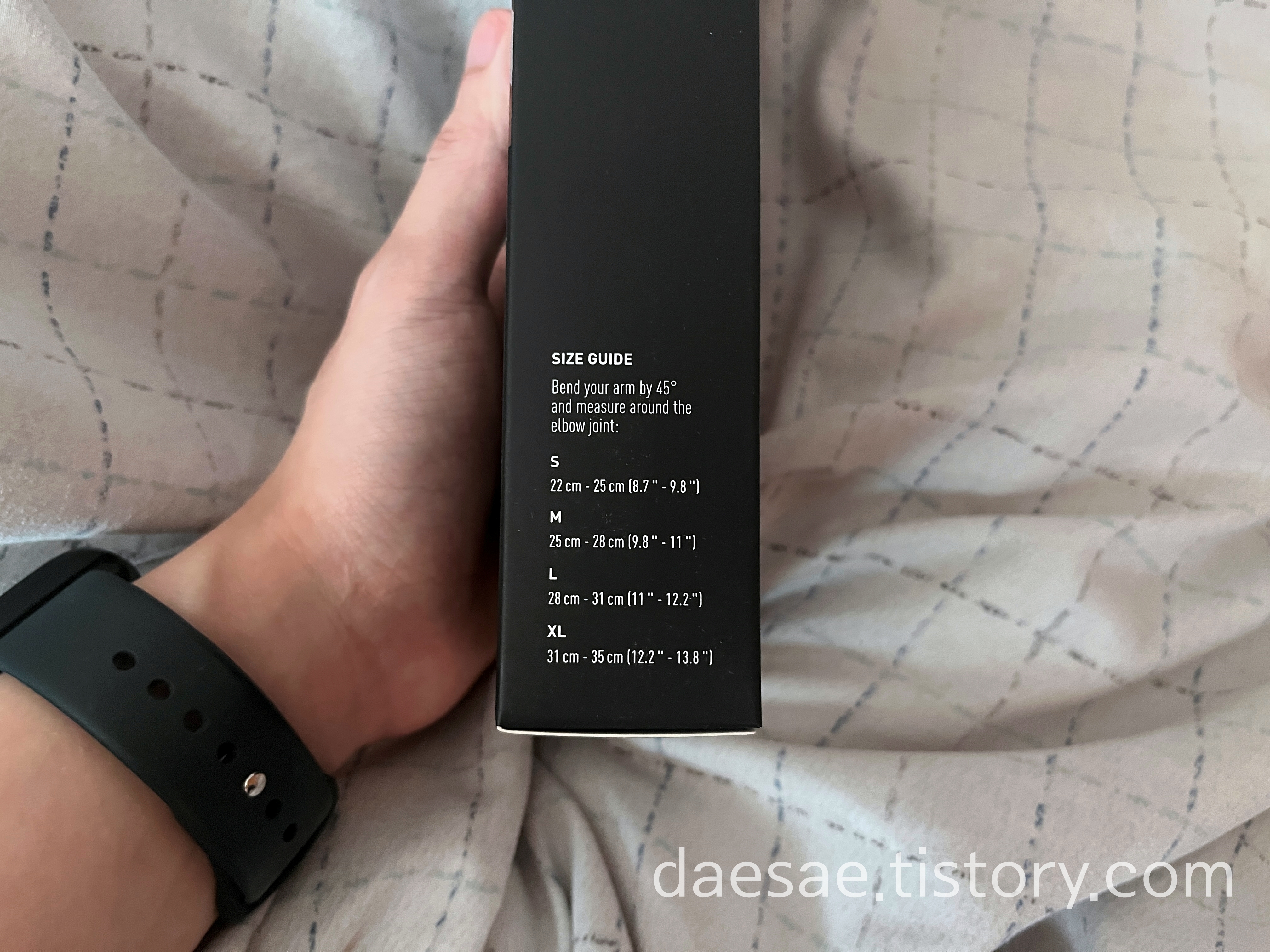 늘어나는 재질이기는 하지만 편안하게 착용하기 위해서는 직접 줄자로 팔꿈치 둘레를 측정해보고 구매하시는 걸 추천드립니다.