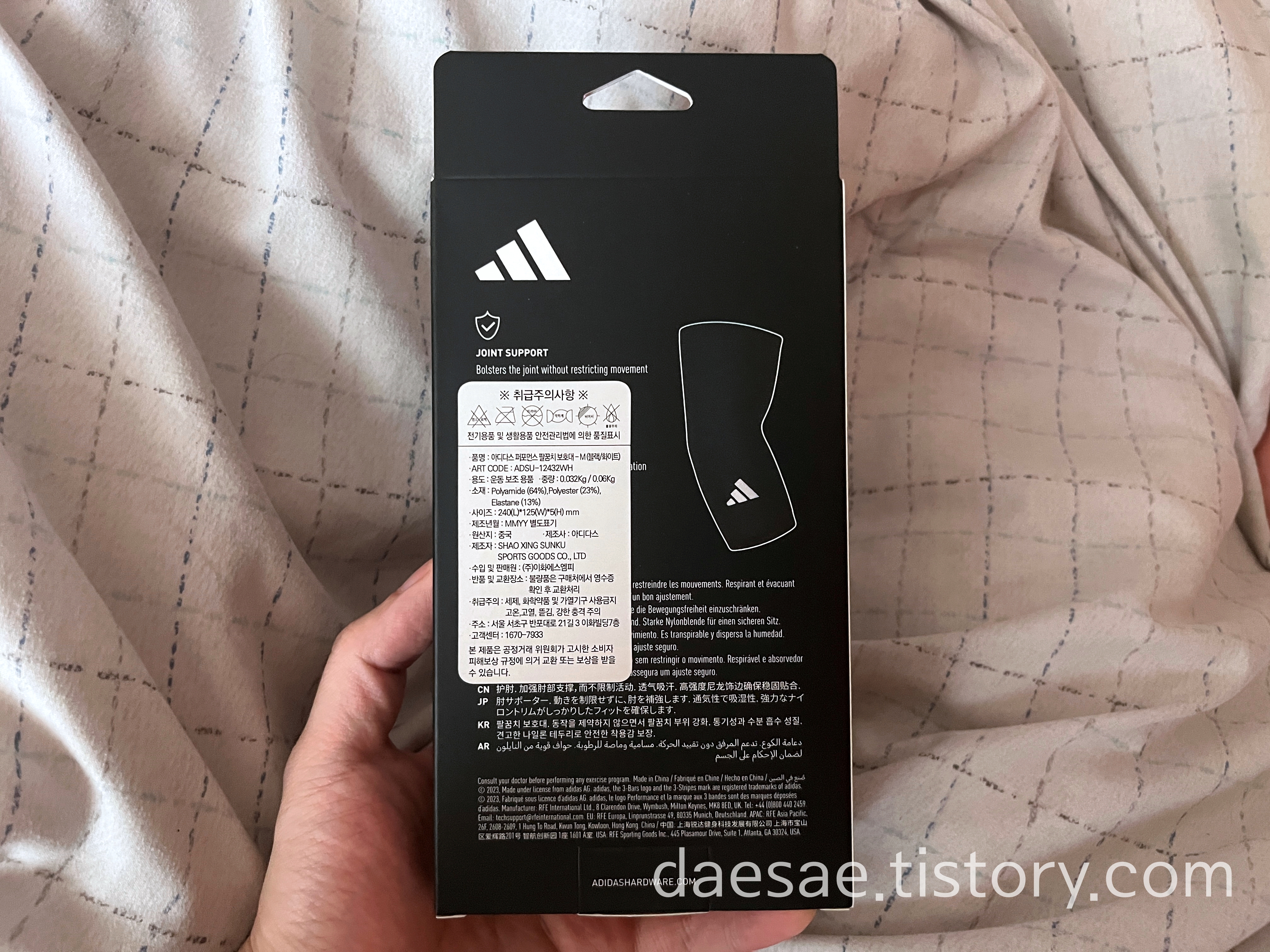 아디다스 팔꿈치 보호대는 제품명이 ADIDAS ELBOW SUPPORT로 기재되어있습니다.